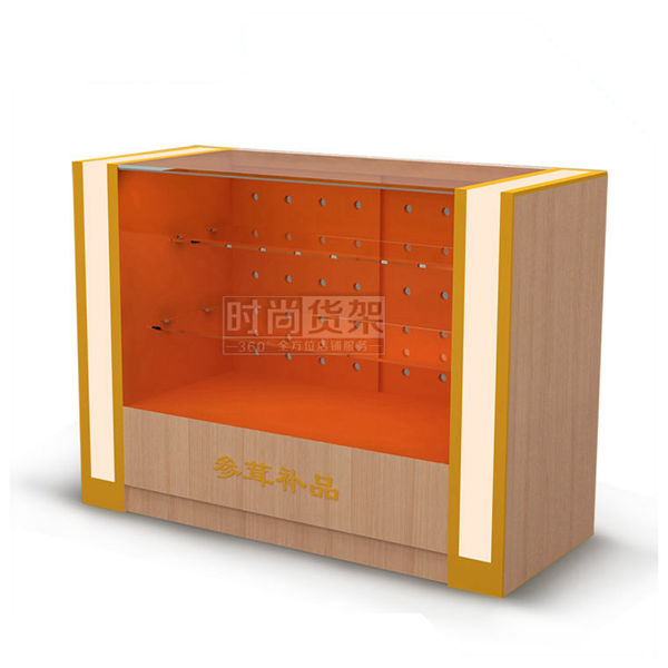 • 產品描述:這是金麗聲貨架專為藥店參茸區陳列打造的一款木質參茸前柜臺。