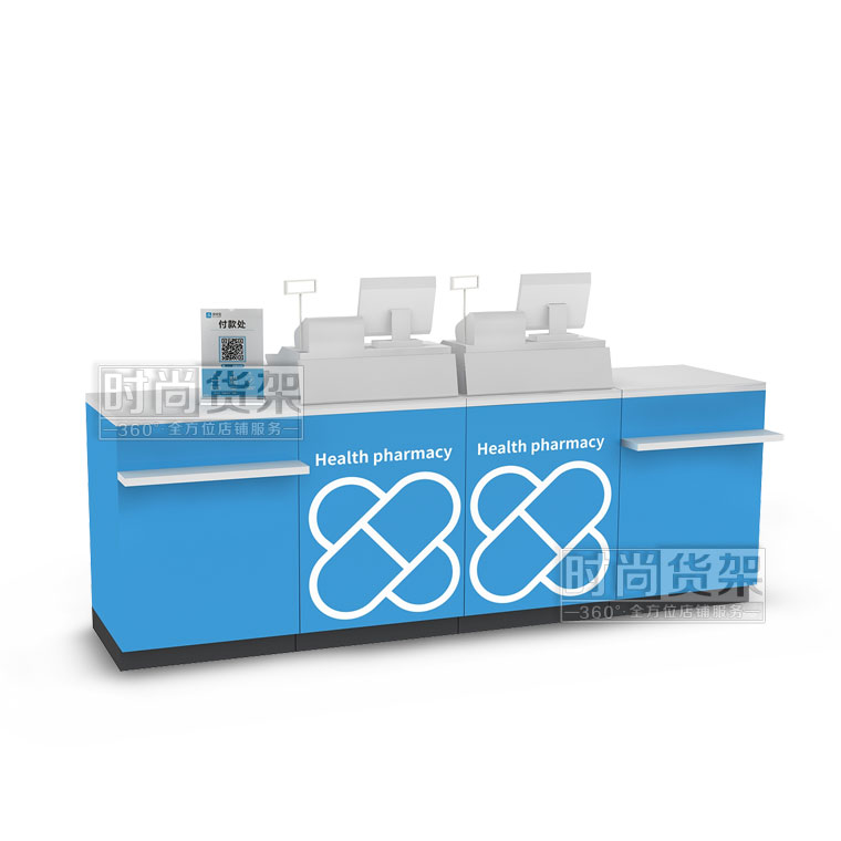 【產(chǎn)品名稱】藥店組合式收銀臺/多功能藥店收銀臺/鋼木藥店收銀臺