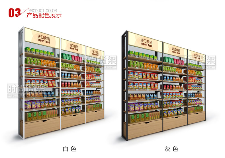 - 產(chǎn)品描述:陽光背板的設(shè)計(jì)讓這款便利店食品區(qū)貨架更具通透性,商品展示效果更佳。